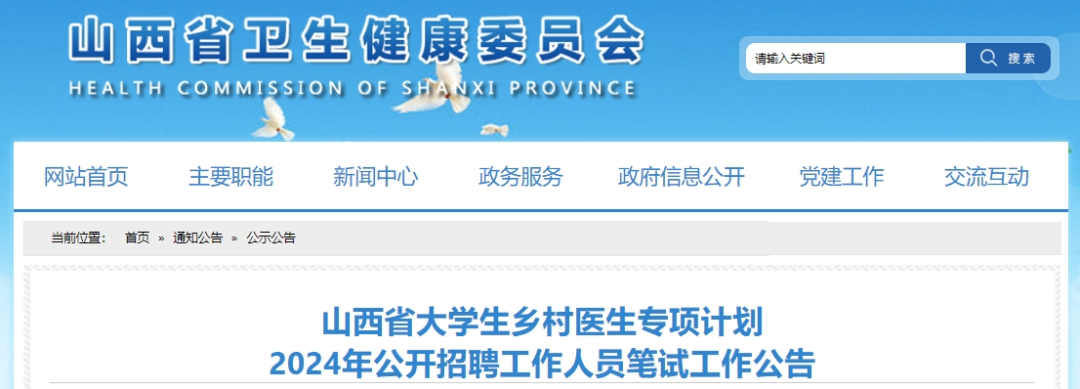 根据《事业单位人事管理条例》,我省委托山西省卫健委人才中心将组织实施山西省大学生乡村医生专项计划2024年公开招聘工作人员笔试。现将有关事项公告如下:参加本次公开招聘的岗位涉及太原市、大同市、阳泉市、长治市、晋城市、忻州市、吕梁市、晋中市、临汾市、运城市10个市56个县(区、市)的440个村卫生室,共计招聘440人。